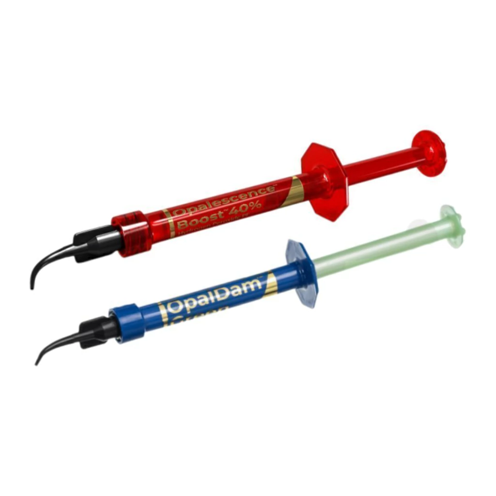 El Blanqueador Opalescence Boost PF 40% + DAM 1.2ml es un kit profesional de blanqueamiento dental en consultorio, con gel de peróxido de hidrógeno al 40% químicamente activado para resultados visibles en solo 40-60 minutos, sin necesidad de luz. Incluye fórmula PF (nitrato de potasio y flúor) que reduce sensibilidad, fortalece el esmalte y previene caries. La barrera gingival OpalDam de 1.2 ml protege los tejidos blandos de irritaciones, se aplica fácilmente y se remueve sin residuos.