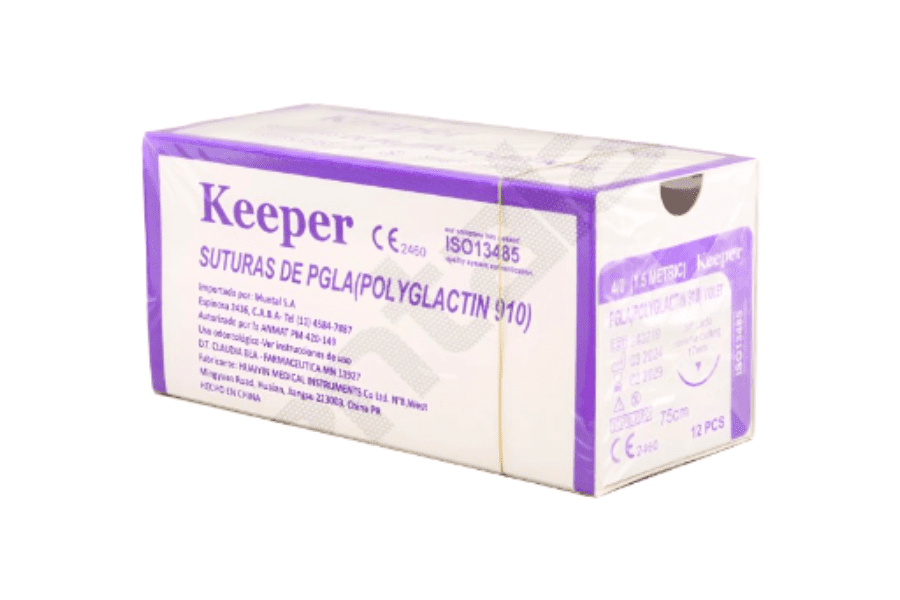 Enhebradas con hilo de PGLA Polyglactin 910 (sutura sintética): La sutura Polyglactin 910 es una sutura quirúrgica estéril absorbible sintética compuesta de un copolímero hecho de 90% de glicolida y 10% de L-lactida.